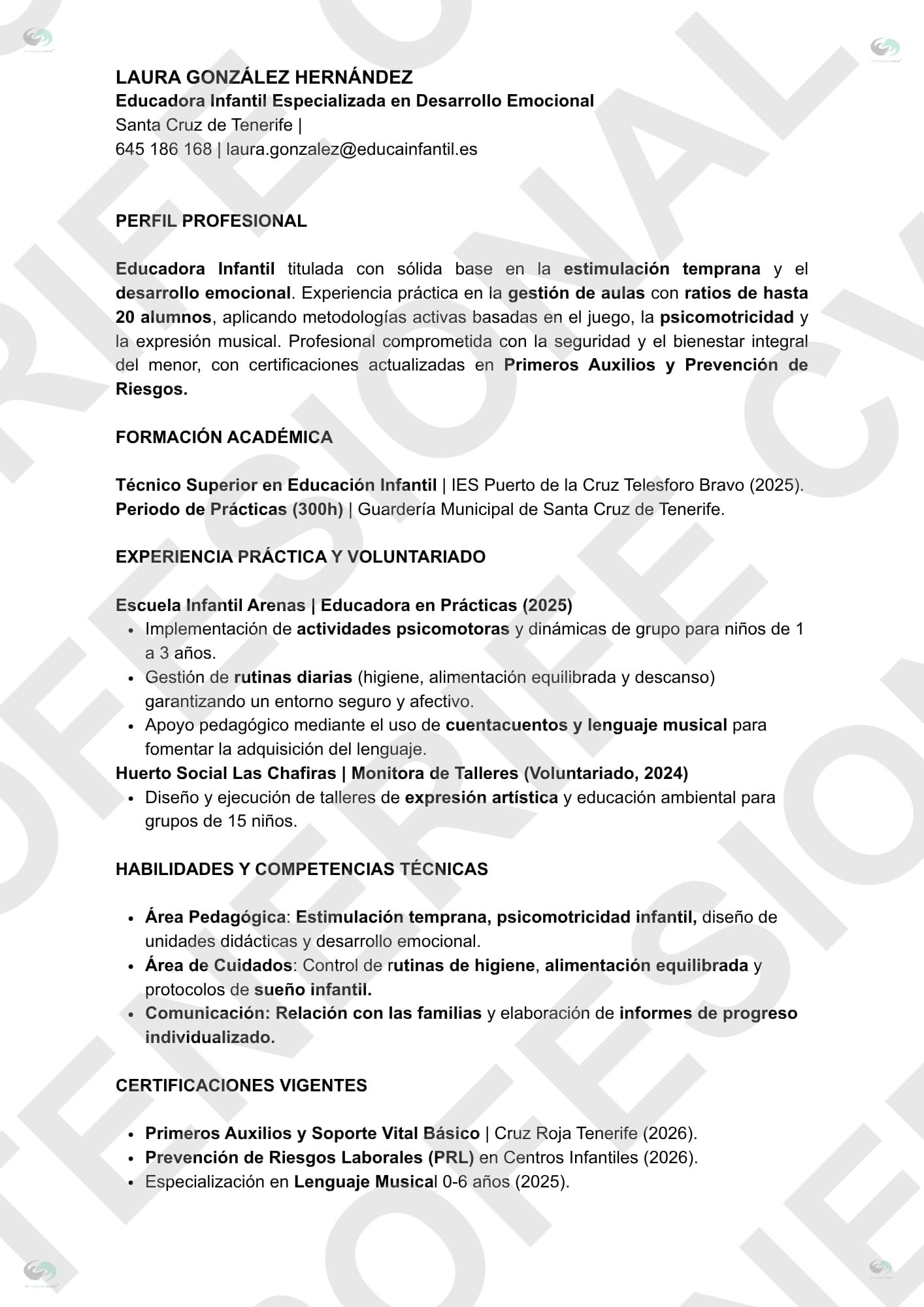 Nuestro objetivo es que tú te encargues de lo que mejor sabes hacer —cuidar y educar— mientras nosotros nos encargamos de que tu perfil brille. Con un diseño limpio, elegante y profesional, este pack es la herramienta definitiva para que las puertas de las mejores oportunidades en Tenerife se abran para ti.