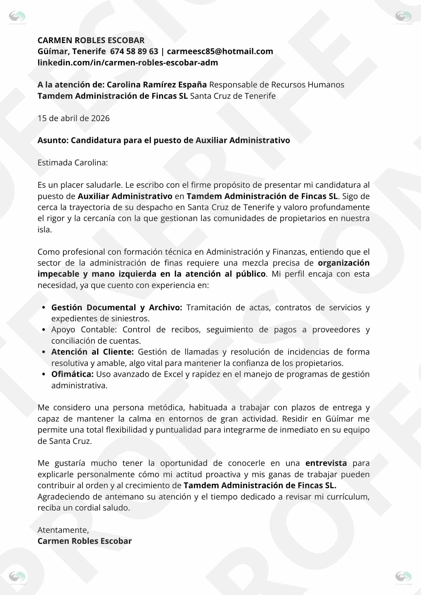 Sé el primero en valorar “CV Profesional Tenerife Auxiliar Administrativo”