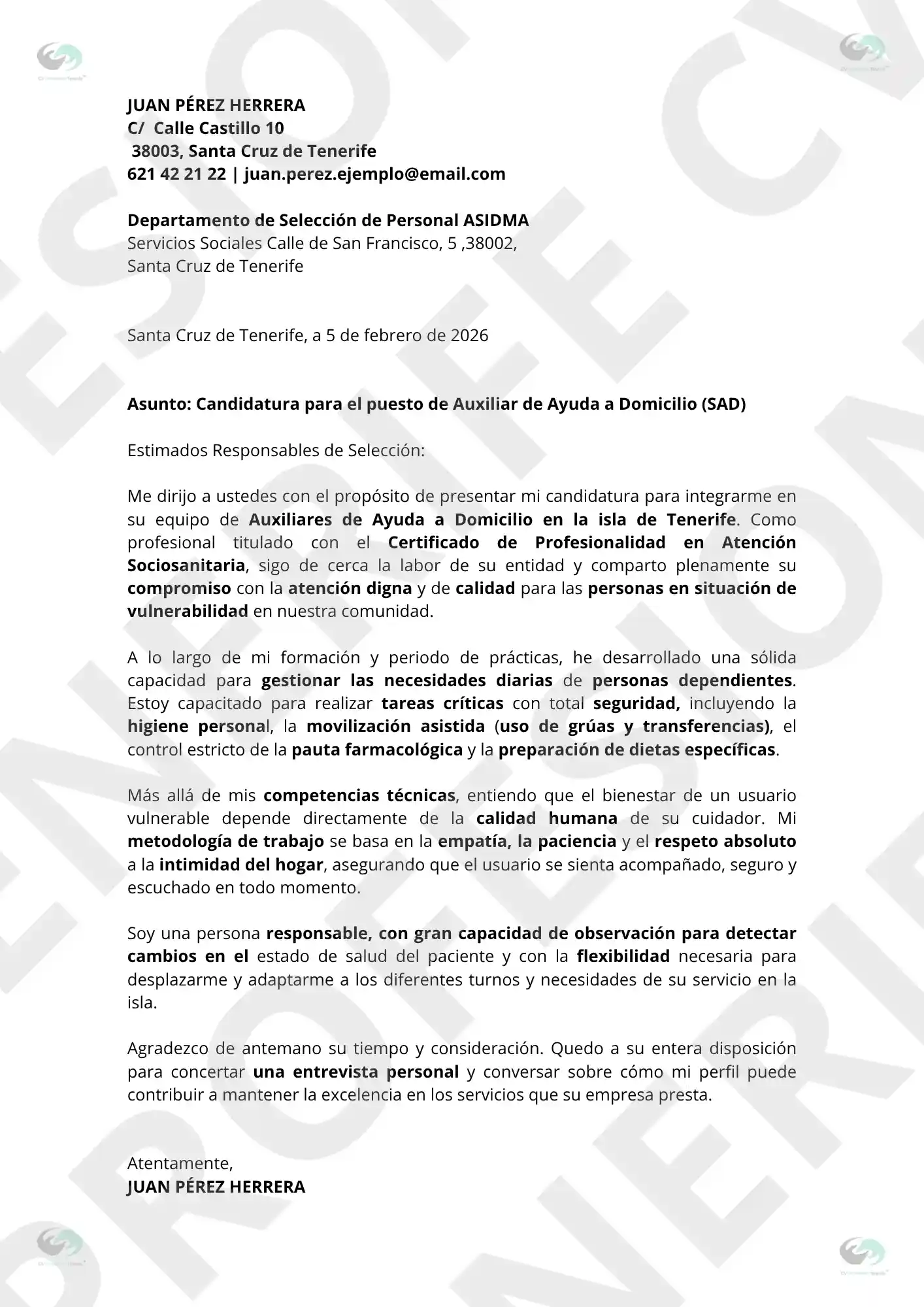 Vistas previas seguras: Imágenes en formato JPG con marca de agua central de CV Profesional Tenerife para proteger la exclusividad del diseño.